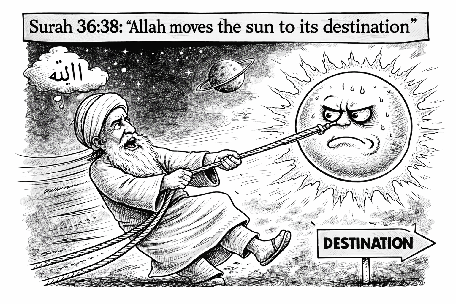 Als de Koran tijdloos is, waarom beschrijft het de zon dan statisch (‘bestemming’) in plaats van dynamisch?”