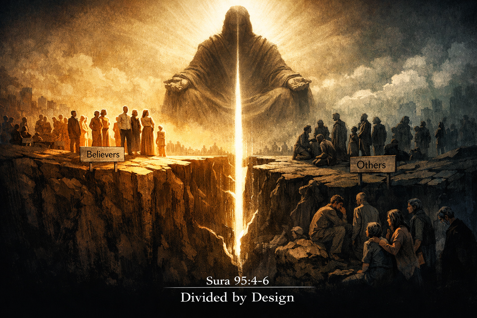 Moreel gezien introduceert dit een vreemde paradox: de mens wordt geschapen in perfectie, maar het universum is ingericht om hem te laten vallen. Wie niet gelooft of ‘goed werkt’, wordt verdoemd tot het allerlaagste. Dit is geen ethiek of opvoeding, dit is een kosmisch systeem van afstraffing en manipulatie. Het vers belooft een ‘oneindige beloning’, maar alleen voor degenen die voldoen aan een vooraf bepaald geloofssysteem — een beloning die nooit kan worden verdiend door puur menselijke verdienste.