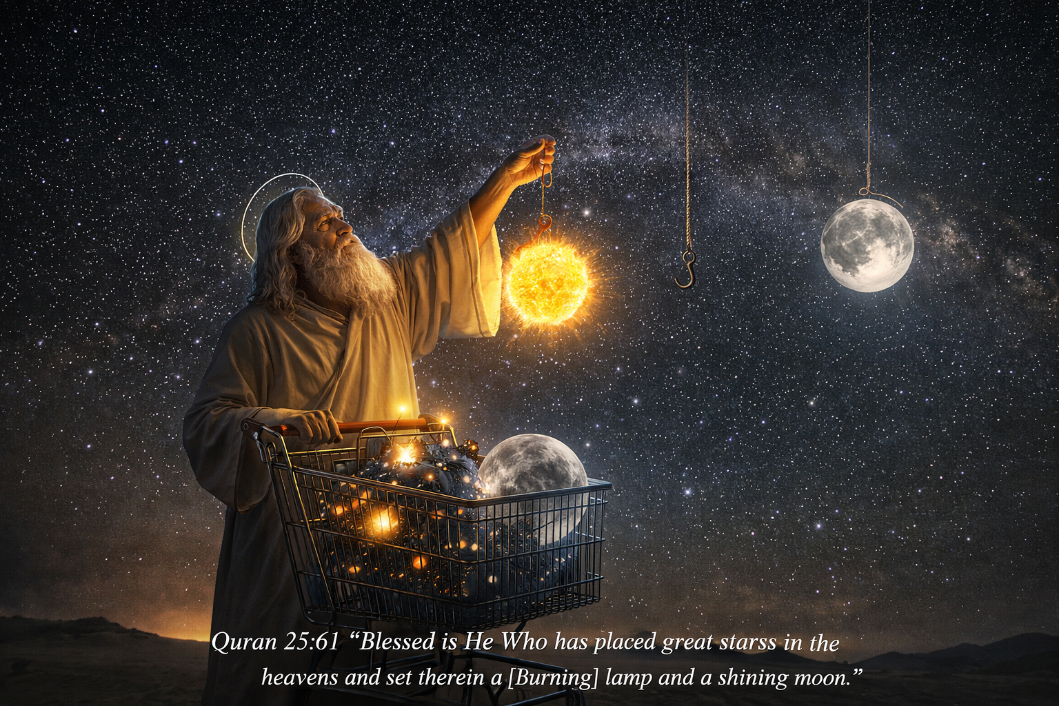 Het vers begint met “Gezegend is Hij die…”, wat impliceert dat deze hemellichamen doelbewust zijn geplaatst door een schepper. Dit is een onbewezen aanname die niet voortkomt uit empirisch bewijs maar uit geloof.