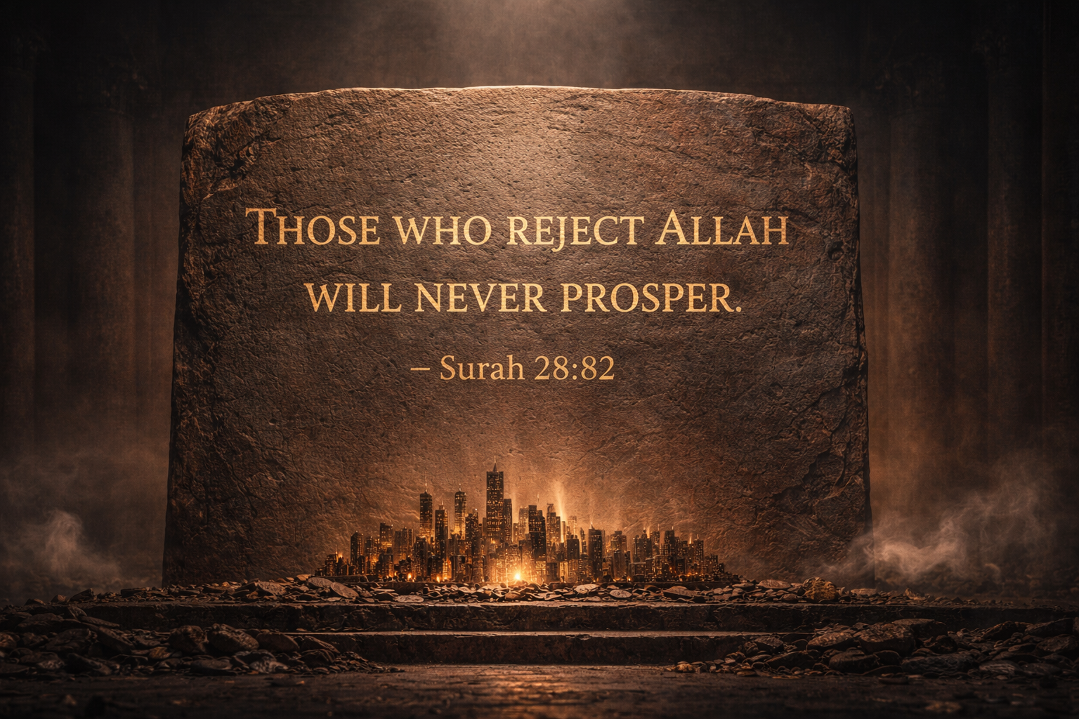 Soera 28:82: “Zij die Allah verwerpen, zullen nooit voorspoedig zijn.”