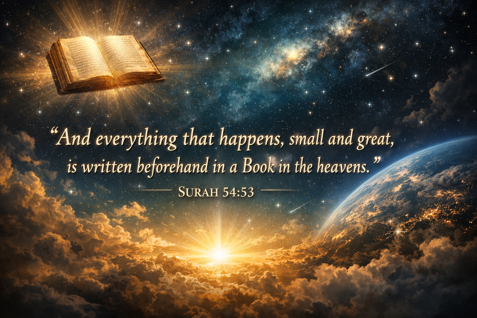 Soera: 54:53. ”En alles wat gebeurt, klein en groot, staat