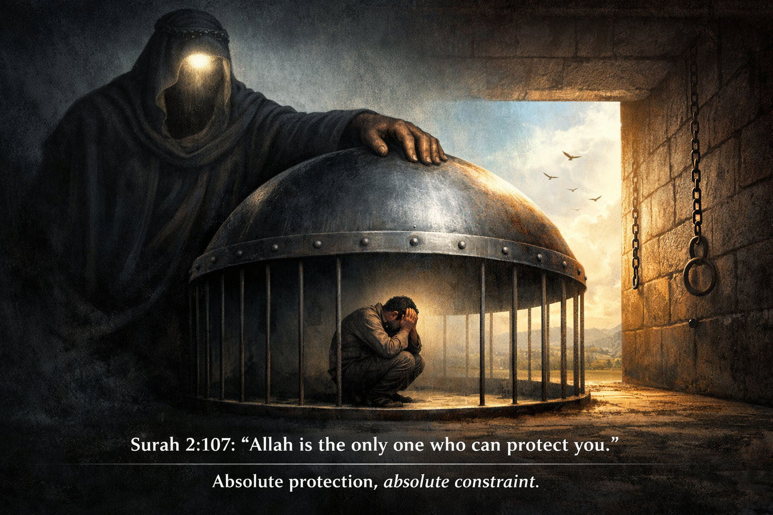 Als het godsbeeld de enige beschermer is, waarom worden miljarden mensen blootgesteld aan ziekte, oorlog en rampspoed? Hoe kan een almachtige entiteit moreel gerechtvaardigd zijn als Hij lijden monopoliseert en veiligheid alleen aan gehoorzaamheid koppelt? Is dit geloof of psychologische dwang? Vrijheid wordt gereduceerd tot illusie, kritisch denken tot gevaar, en integriteit tot een risico. Hoe kan een mens ooit moreel verantwoordelijk zijn voor falen dat buiten zijn controle ligt, terwijl bescherming alleen van Hem komt? Dit is geen spirituele relatie tussen gelijke actoren; het is een verticale machtsstructuur die angst, schuld en afhankelijkheid cultiveert, en die loyaliteit als valuta afdwingt.