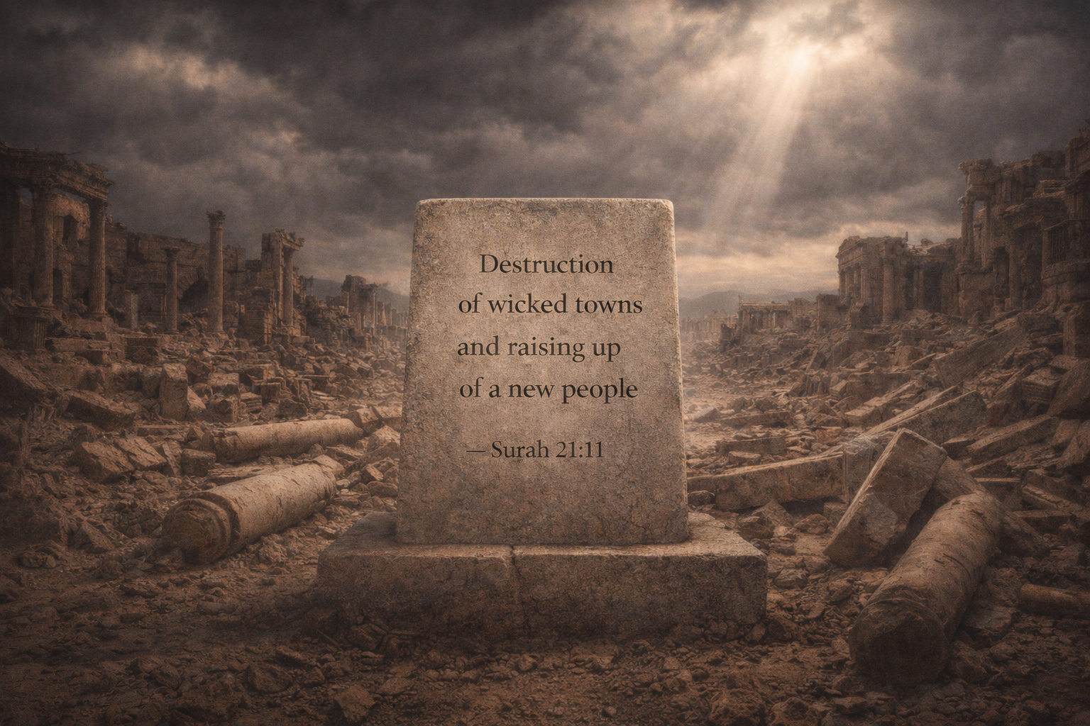 Soera 21:11 “En hoeveel onrechtvaardige steden hebben Wij verwoest en er vervolgens een ander volk uit voortgebracht?”