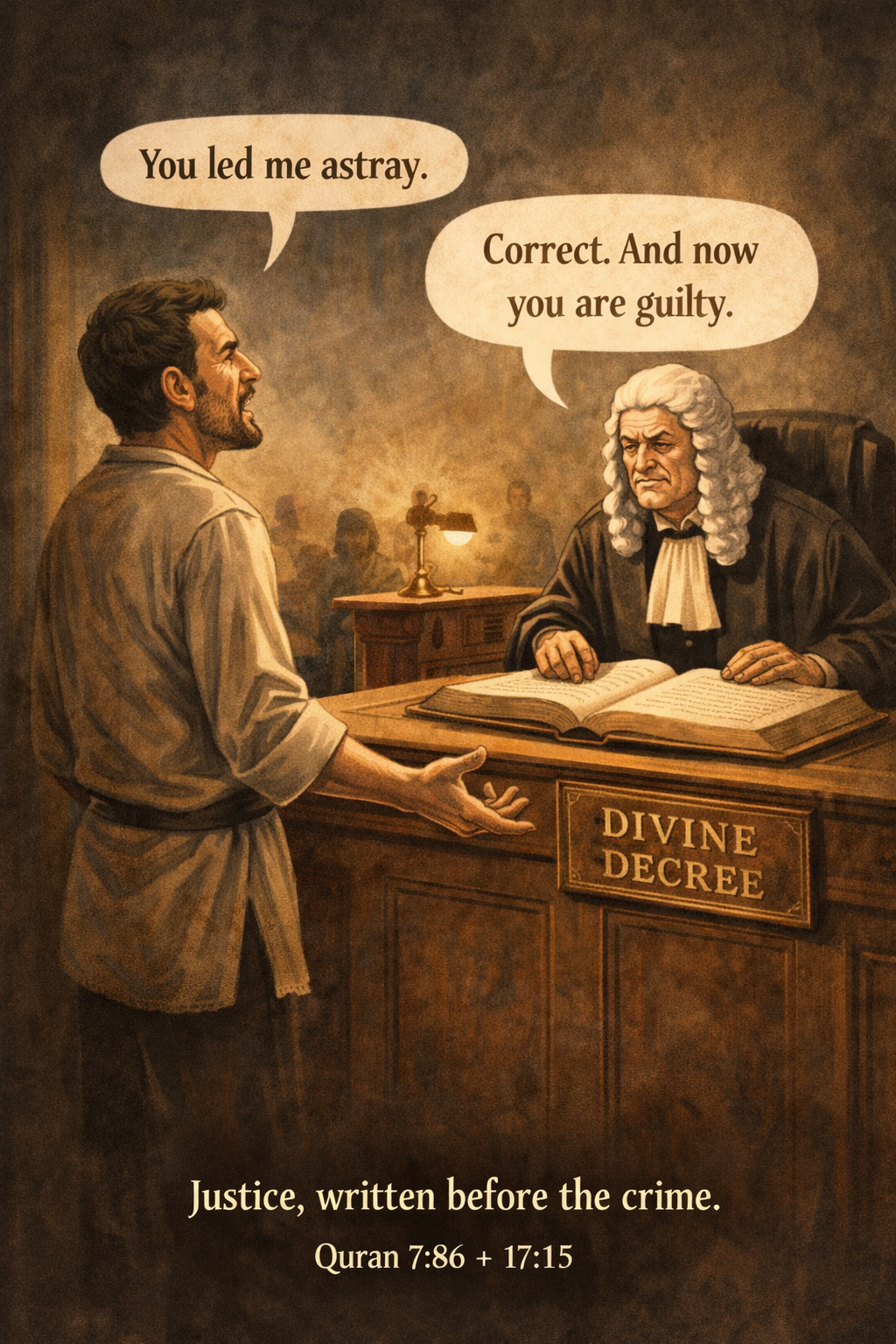 Als men beweert dat God iemand laat dwalen en dat niemand hem daarna kan leiden, en vervolgens zegt dat dezelfde persoon verantwoordelijk is voor zijn dwaling, dan spreekt men zichzelf tegen. Want als de oorzaak bij God ligt, is de schuld niet bij de mens; en als de schuld werkelijk bij de mens ligt, dan kan men niet zeggen dat God hem eerst tot dwaling bracht. Het is onmogelijk dat dezelfde hand zowel de oorzaak als de aanklager is. Wat hier verschijnt als mysterie van goddelijke wijsheid lijkt eerder op menselijke redenering die haar eigen tegenspraken probeert te verhullen.