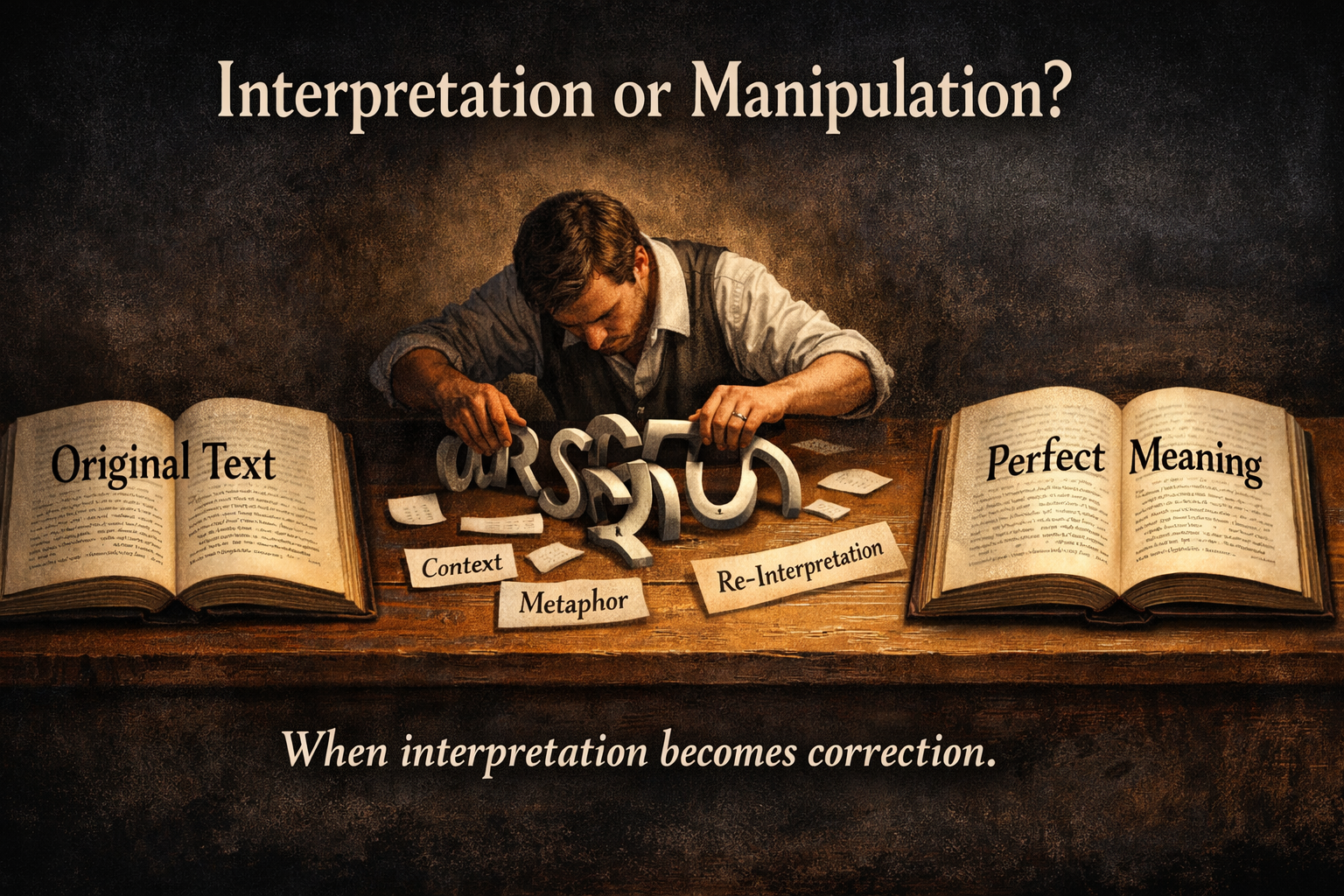 Wanneer interpretatie de tekst niet meer uitlegt maar voortdurend corrigeert, verandert zij van begrip in manipulatie — en van waarheid in behoud.